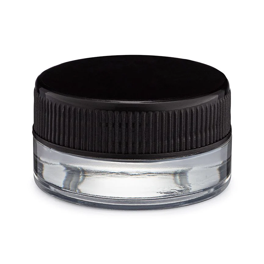 CLEAR 7ML NO NECK STRAIGHT GLASS JARS WITH BLACK CAPS