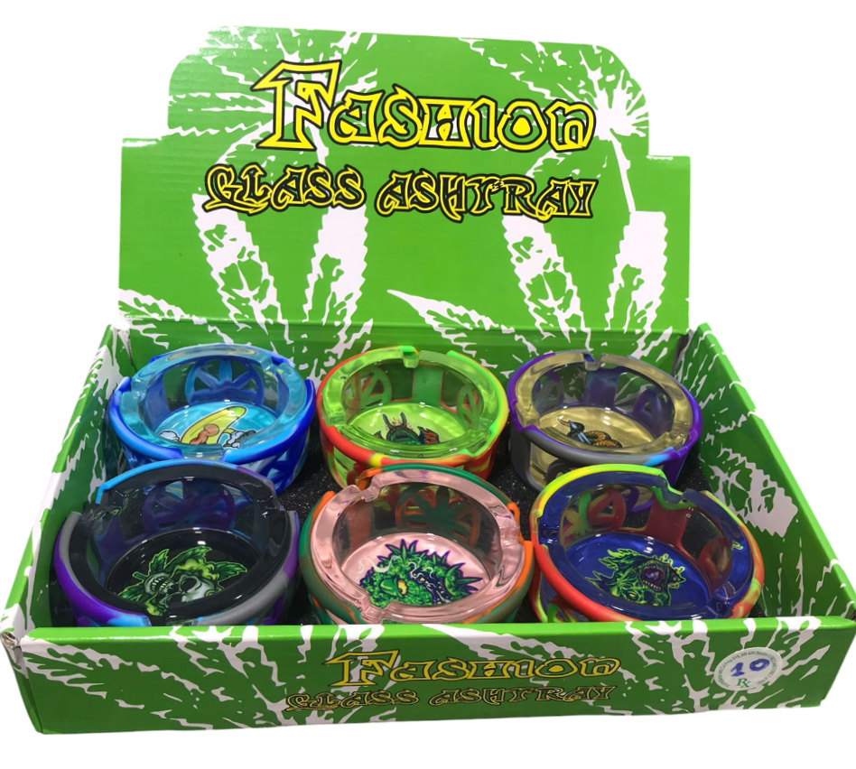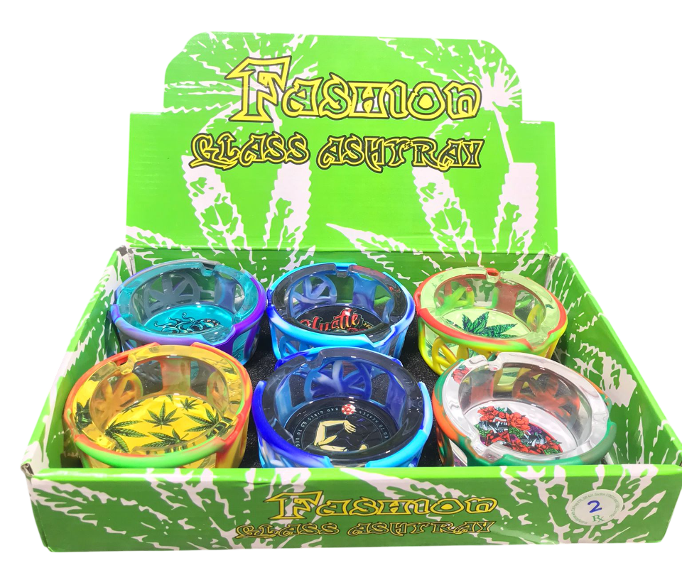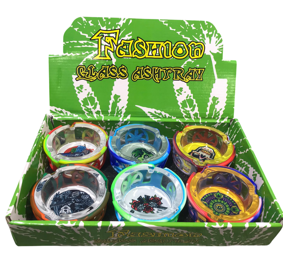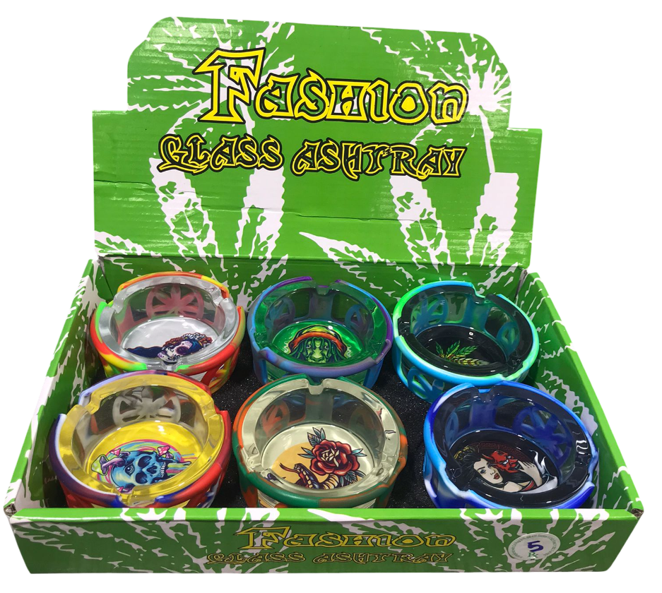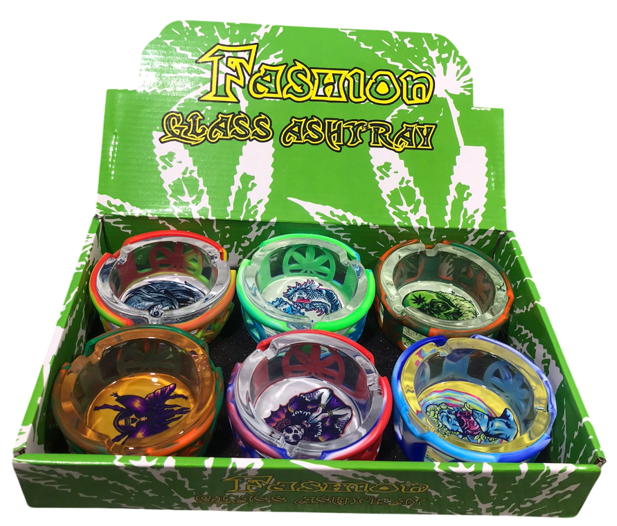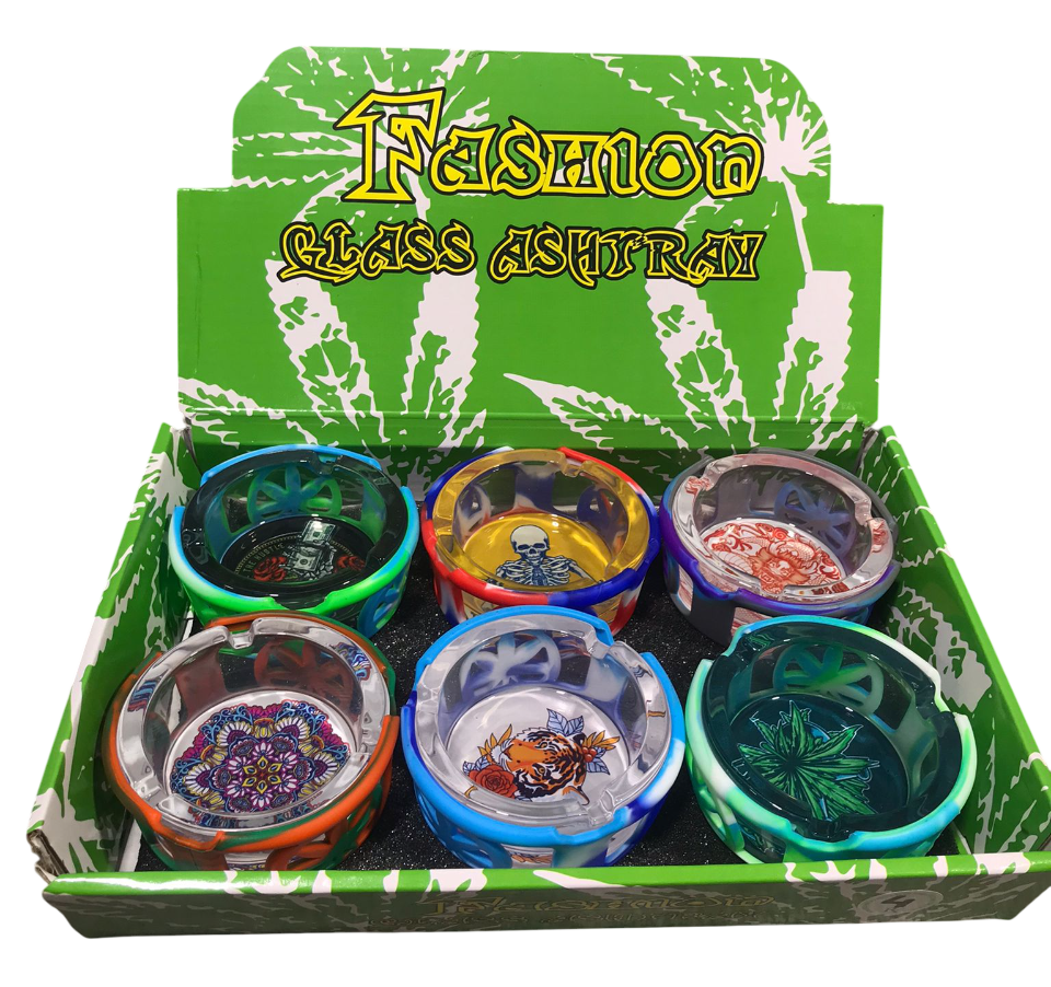 GLASS ASHTRAY W/ SILICONE COVER 6CT