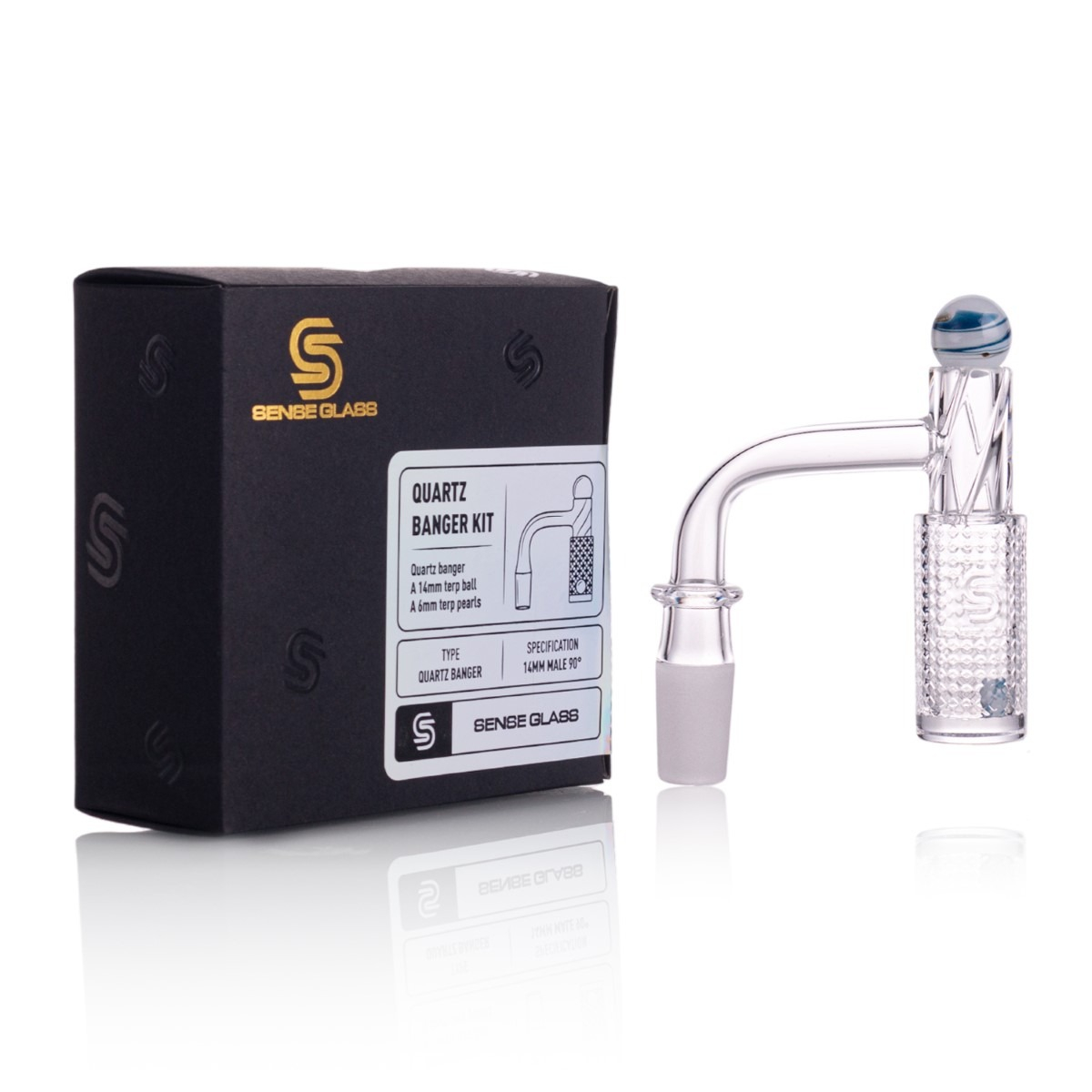 SENSE GLASS 14MM MALE 90° W/ 6MM TERP PEARLS QUARTZ BANGER KIT